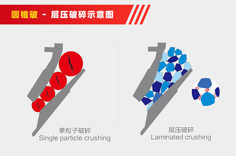以目前在中細(xì)碎領(lǐng)域大顯身手的圓錐破來說,它的產(chǎn)品粒度較均勻、能源消耗少。但在它出場的初期并不是那么優(yōu)秀,在生產(chǎn)中存在很多缺點,如成品針片狀含量較多、粒形不夠好。后來,針對這些問題,業(yè)界提出了層壓破碎原理,并依此進(jìn)行了工藝上的改進(jìn)。