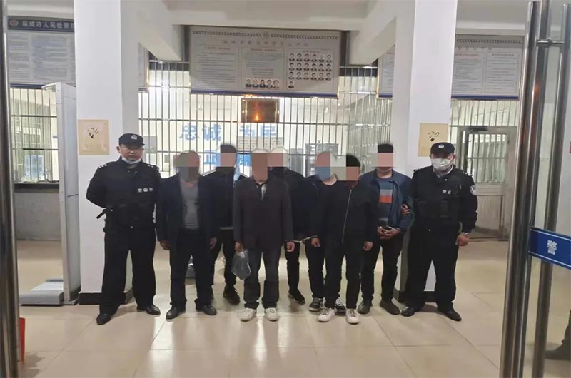 民警得知這一情況后,迅速成立專項(xiàng)調(diào)查組展開行動(dòng)。通過調(diào)查取證,民警掌握了該采砂團(tuán)伙的大量證據(jù)。2021年10月30日,麻城警方雷霆出擊,成功抓獲了以肖某為首的團(tuán)伙成員共9人,現(xiàn)場扣押鏟車兩臺,對講機(jī)四部,一舉將這個(gè)長期盤踞在新洲、鐵門、歧亭、宋埠、中館驛一帶的盜砂犯罪團(tuán)伙抓獲。